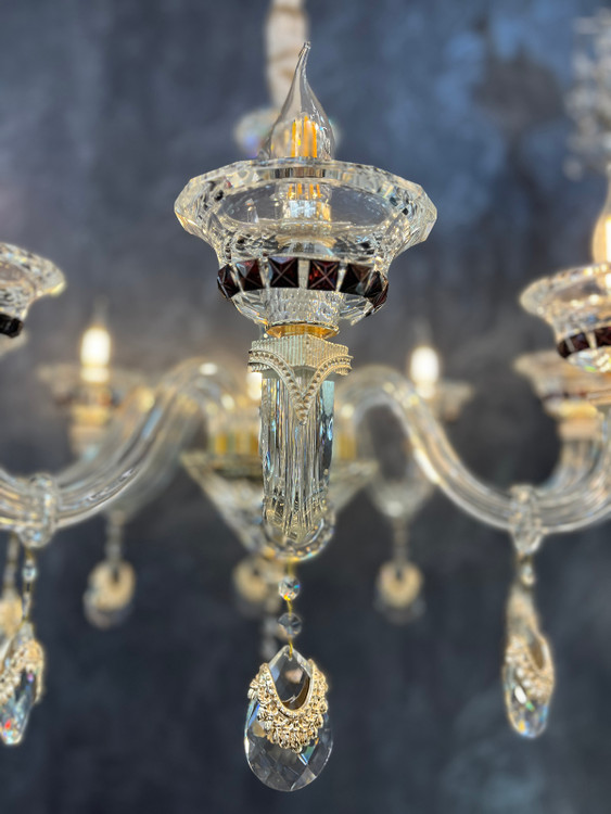 - جنس بدنه از شمش کریستال: استفاده از شمش کریستال، نه تنها به معنای دوام و استحکام بالاست، بلکه شفافیت و درخشش بینظیری به لوستر میبخشد. این متریال باکیفیت، نور را به زیبایی هرچه تمامتر منعکس کرده و جلوهای لوکس و مجلل به محیط میبخشد.