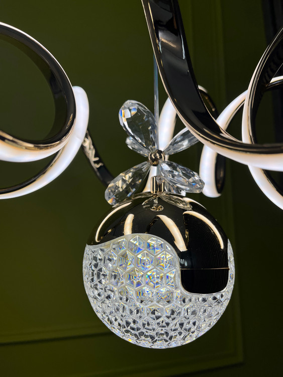 بدنه این لوستر از فلز با آبکاری رزگلد ساخته شده. آبکاری رزگلد هم استحکام خوبی دارد و هم جلوهای لوکس و مدرن به فضا میدهد. طراحی کلی کار بدون شلوغی و جزئیات اضافه است و همین باعث میشود با اکثر سبکهای دکوراسیون، مخصوصاً فضاهای مینیمال، مدرن و اسکاندیناوی، هماهنگ باشد.