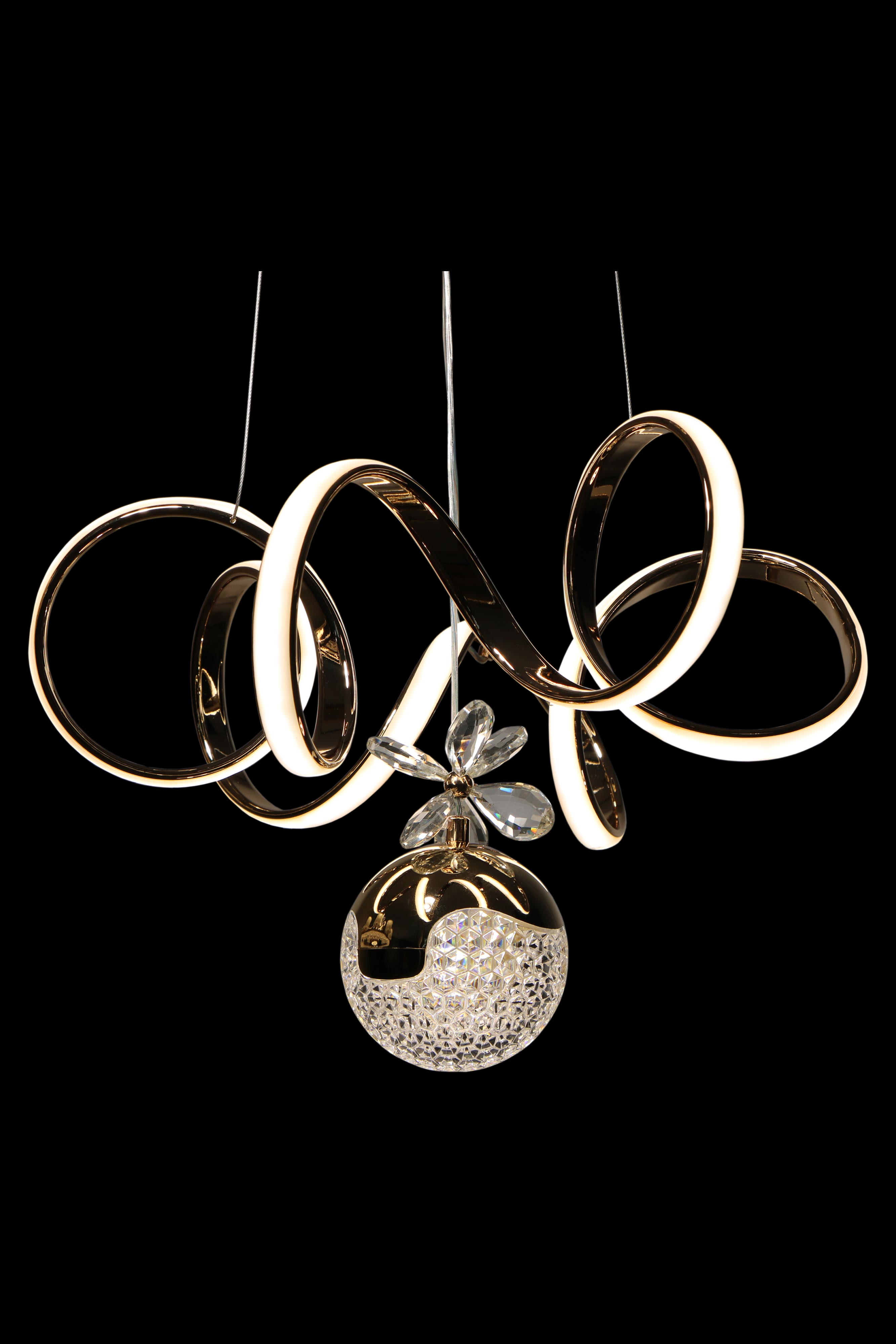 بدنه این لوستر از فلز با آبکاری رزگلد ساخته شده. آبکاری رزگلد هم استحکام خوبی دارد و هم جلوهای لوکس و مدرن به فضا میدهد. طراحی کلی کار بدون شلوغی و جزئیات اضافه است و همین باعث میشود با اکثر سبکهای دکوراسیون، مخصوصاً فضاهای مینیمال، مدرن و اسکاندیناوی، هماهنگ باشد.