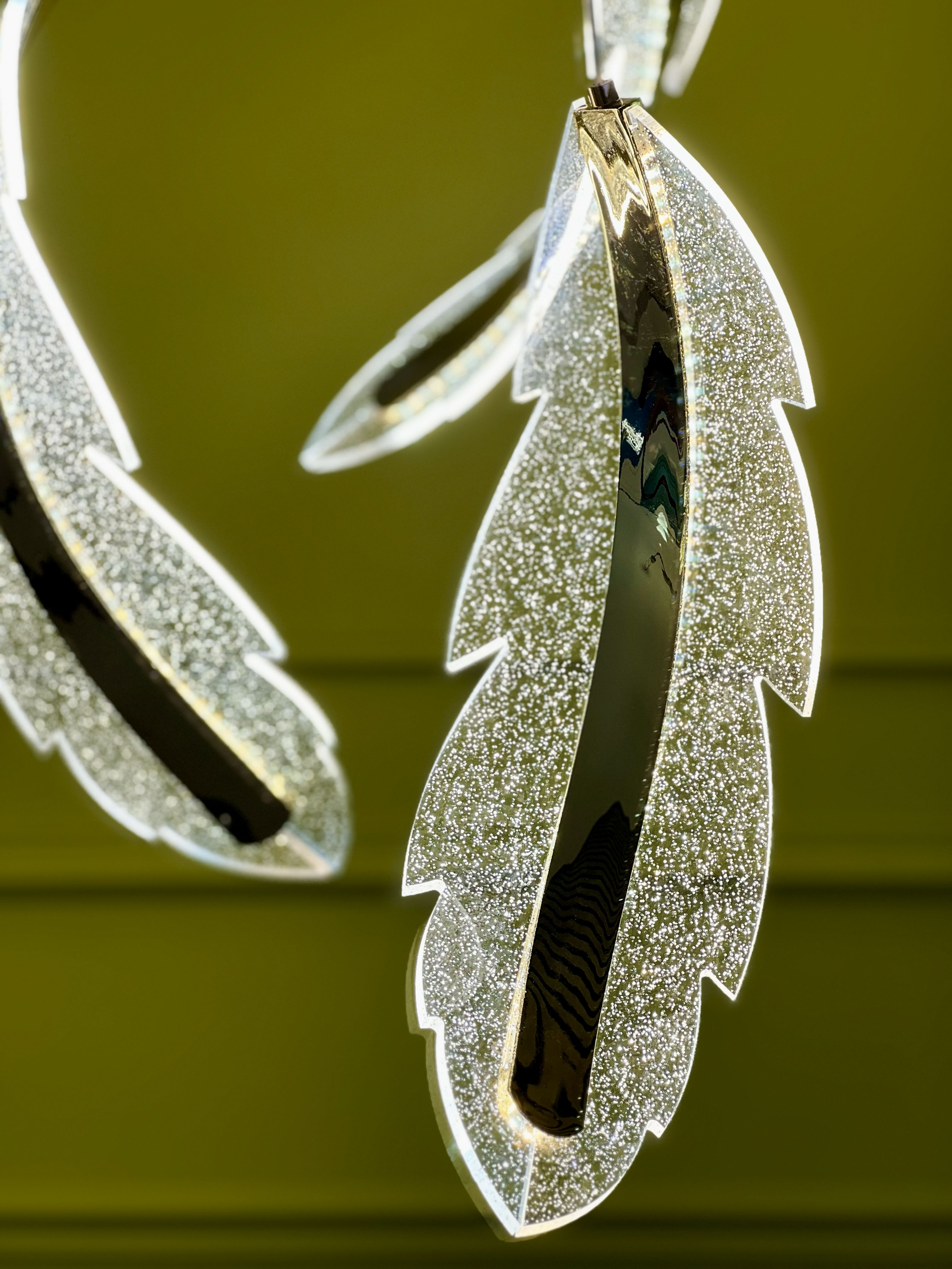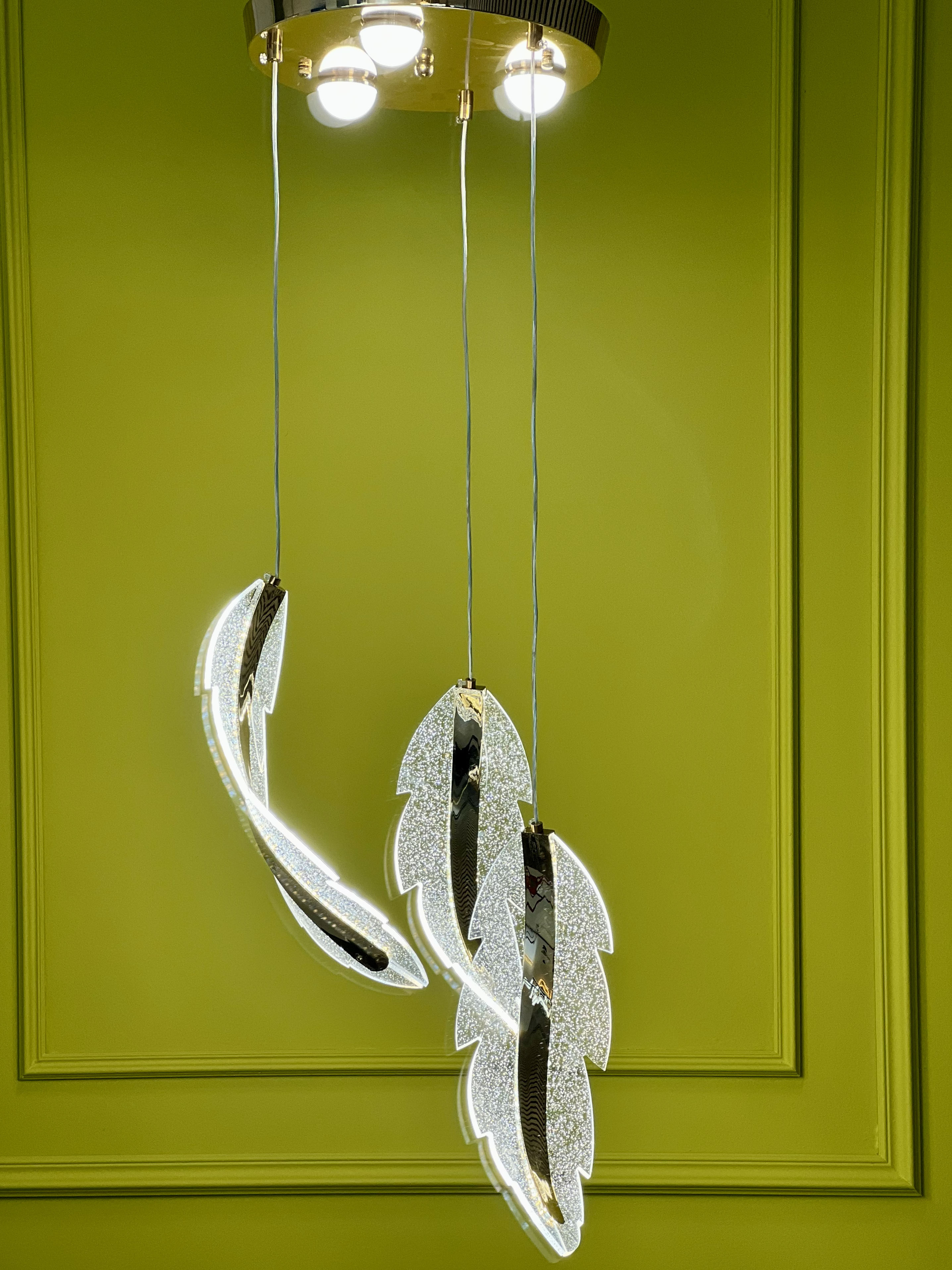 لوستر آویز مدرن وارداتی مدل برگی سهتایی شايندار کد ۲۲۱ با الهام از فرم برگ و طراحی خاص، انتخابی متفاوت و چشمنواز برای اتاقخواب، آشپزخانه و فضاهای مدرن و لوکس است. طراحی سهتایی این مدل، علاوه بر زیبایی ظاهری، باعث پخش متعادل نور در محیط میشود و جلوهای دکوراتیو به فضا میبخشد.