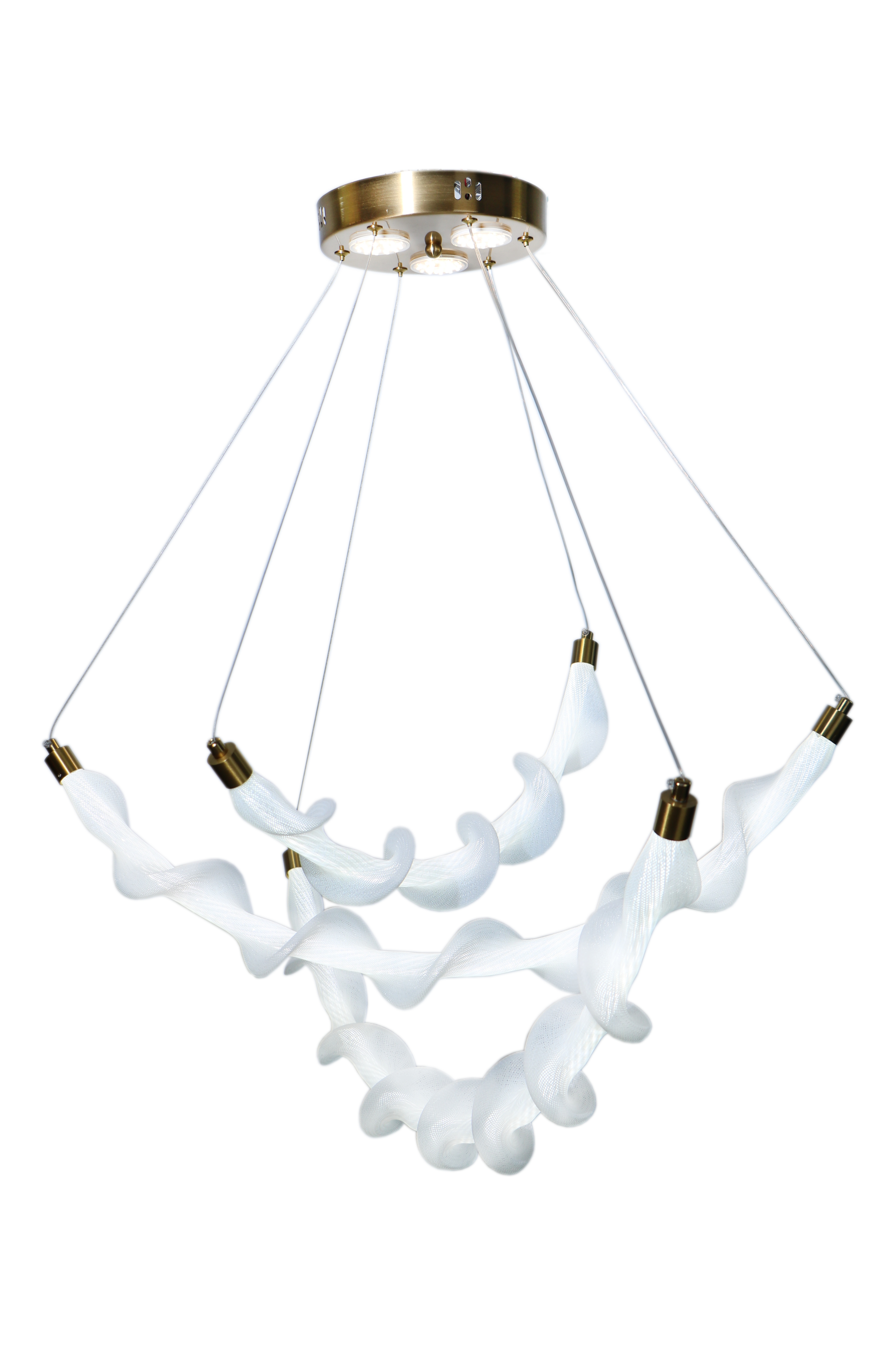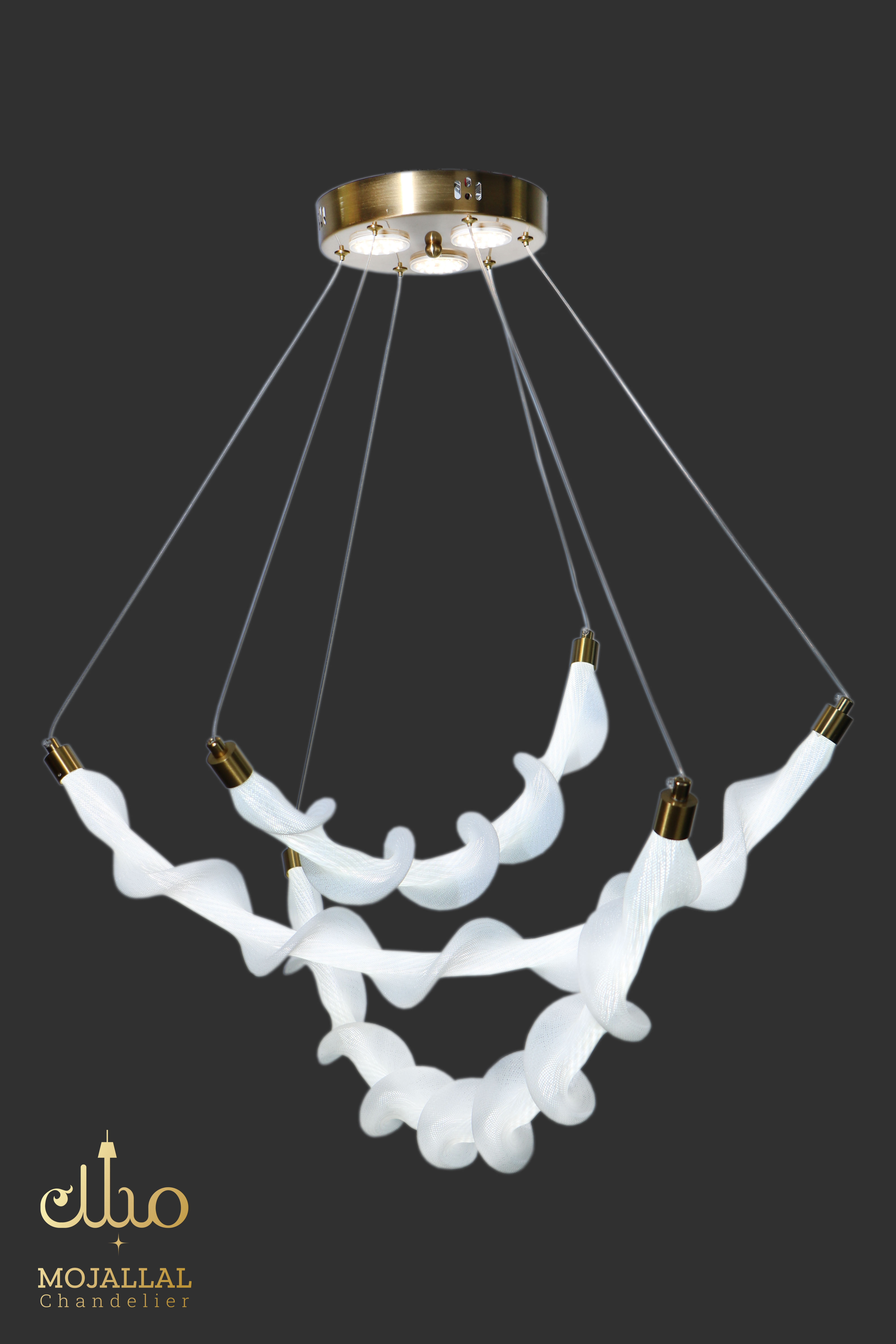 اولین چیزی که در مدل 3832 خودنمایی میکند، ساختار ساختارشکنانه آن است. برخلاف لوسترهای کلاسیک که بر پایه تقارن استوارند، این آویز با الهام از فرم گیاه پیچک، خطوطی منحنی و پویا را به فضای شما میآورد. این نوع طراحی باعث میشود فضا بزرگتر و دلبازتر به نظر برسد؛ چرا که خطوط منحنی، چشم را در محیط حرکت میدهند.