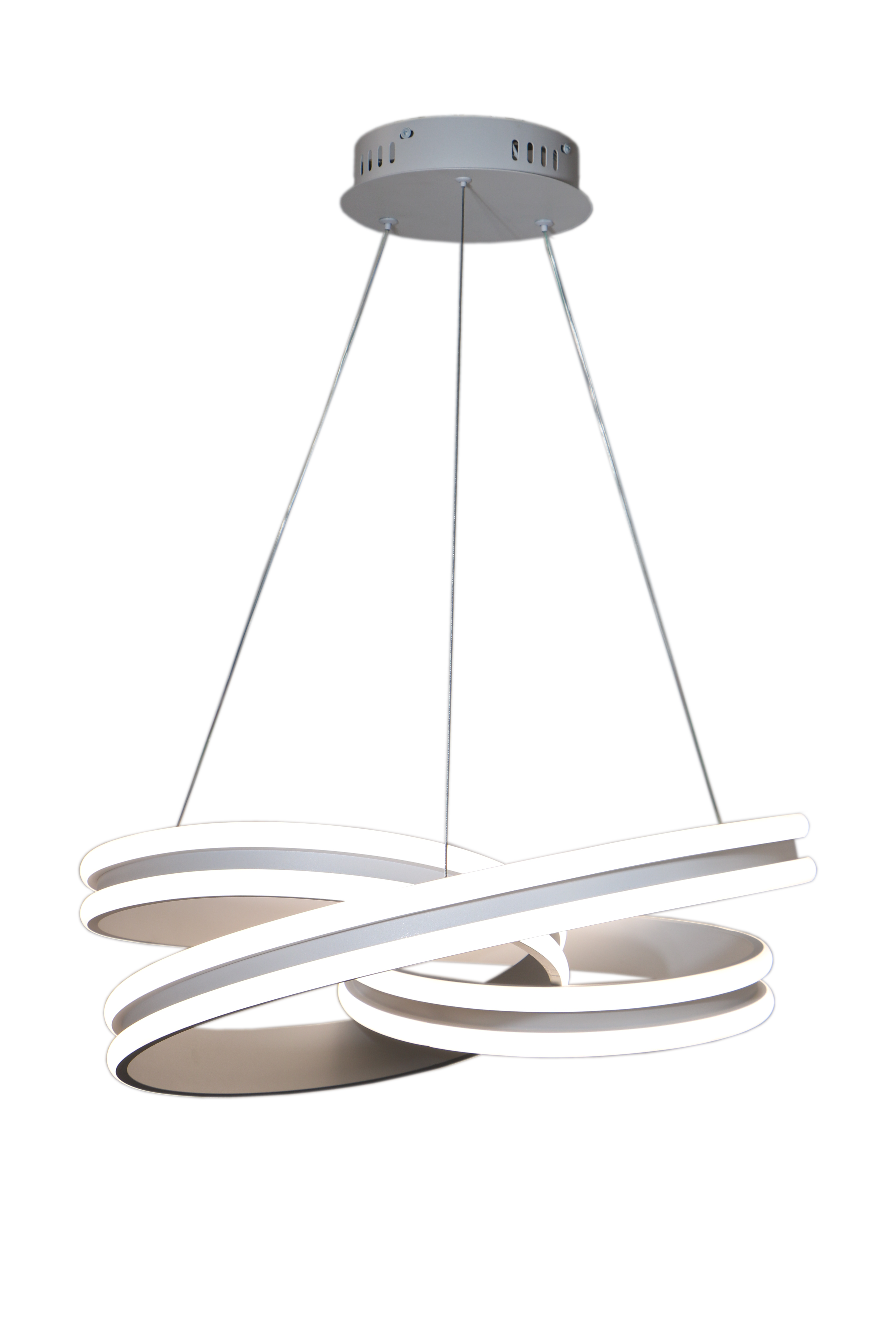 اولین چیزی که در مدل 9001 نگاهها را به خود خیره میکند، ساختار هندسی و پیچی (Spiral) آن است. این لوستر از کلیشههای سنتی فاصله گرفته و با خطوط نرم و منحنی، حس پویایی را به فضا میبخشد. برخلاف مدلهای تخت، فرم پیچی این آویز باعث میشود نور به صورت ۳۶۰ درجه و یکنواخت در محیط پخش شود و سایههای تند ایجاد نکند.