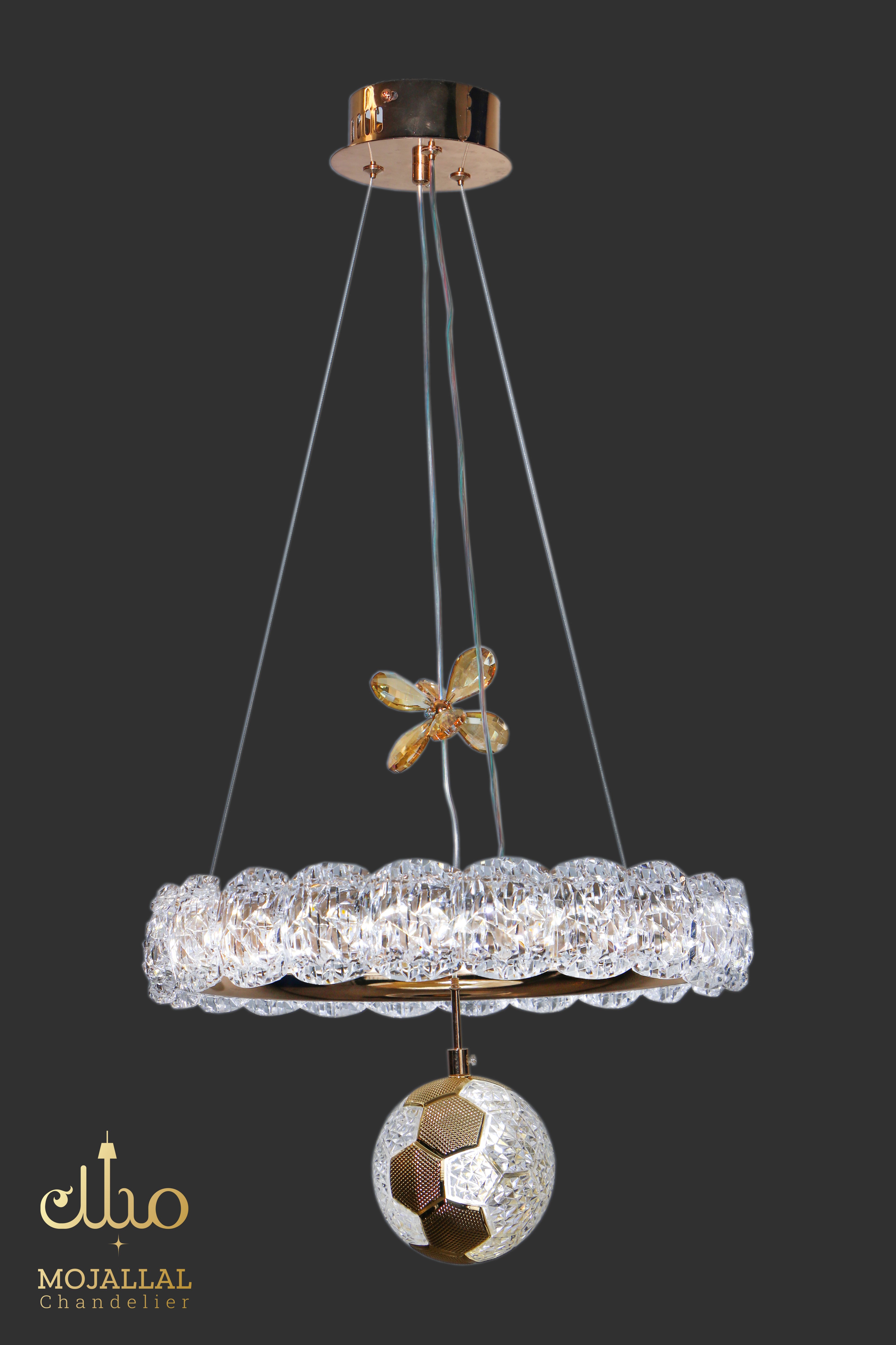 مدل 8018 برای کسانی که از لوسترهای شلوغ و کلاسیک خسته شدهاند، بهترین انتخاب است. این آویز به دلیل اشغال فضای بصری کم، برای آپارتمانهای مدرن که سقفهای خیلی بلندی ندارند نیز بسیار مناسب است. گوی شیشهای آن باعث میشود نور به شکلی رویایی در محیط پخش شود و سایههای نرم ایجاد کند.